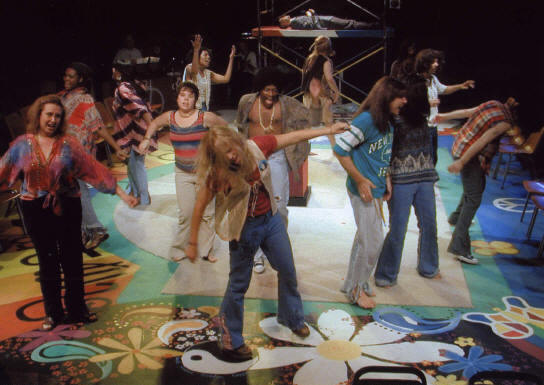 New Line Theatre’s mind-blowing, brain-expanding June 2000 production of the trippingly psychedelic American tribal love-rock musical Hair returned in the summer of 2001 for a sold-out six week run. Gerry Kowarksy of The St. Louis Post Dispatch called New Line’s first production of Hair "the first must-see of the summer." Judy Newmark of the Post Dispatch named it one of the top shows of the year. After a sold out run in 2000, dozens of people asked if New Line’s Osage tribe would ever reunite. So they did. Almost the whole cast and band came back together for more fun with Berger, Claude, Jeannie, Sheila, and the whole tribe. It was an experience none of us will ever forget. Read the terrific article in the November 2001 American Theatre magazine about New Line's HAIR.