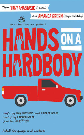 Everything you thought you knew, Leave that all behind. Just keep one hand on the truck And try not to lose your mind. This is not a child's game – This is not a game of chance – It's a sharp honed skill, It's a test of will, It's keepin' still, When the devil tells you, "Dance!" — Benny Perkins, Hands on a Hardbody New Line closed its 23rd season with the American regional premiere — the very first production since its Broadway run — of HANDS ON A HARDBODY, the thrilling, powerfully emotional new musical featuring a country-rock-pop score by Trey Anastasio (frontman for the rock band Phish) and Amanda Green (High Fidelity, Bring It On), and a script by Pulitzer Prize winning playwright Doug Wright. The New Line cast included Todd Schaefer (JD Drew), Jeffrey M. Wright (Benny Perkins), Rey Arceno (Jesus Peña), Mike Dowdy (Mike Ferris), Cindy Duggan (Janis Curtis), Zachary Allen Farmer (Frank Nugent), Ryan Foizey (Greg Wilhote), Alison Helmer (Virginia Drew), Marshall Jennings (Ronald McCowan), Taylor Pietz (Heather Stovall), Anna Skidis (Norma Valverde), Margeau Baue Steinau (Cindy Barnes), Luke Steingruby (Chris Alvaro), Keith Thompson (Don Curtis), and Marcy Wiegert (Kelli Mangrum). The show was directed by Scott Miller and Mike Dowdy, with scenic design by Rob Lippert, lighting design by Kenneth Zinkl, costume design by Sarah Porter and Marcy Wiegert, and sound design by Kerrie Mondy. This unique new musical is based on the acclaimed 1997 documentary of the same name, about an annual contest at a Texas truck dealership, where ten hard-luck Texans compete for a new hardbody truck. A new lease on life is so close each of them can touch it, and now for once, their fate is in their hands. Under a scorching sun, over the next 91 hours they will laugh, cry and push their bodies and minds to the limits, as they fight to keep at least one hand on a brand new truck. The contestant with the most nerve and endurance will drive away with the American Dream.