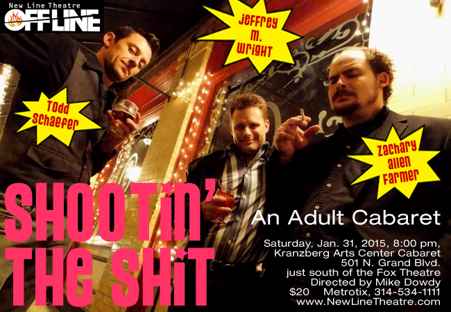 New Line Theatre Off Line presented another quirky, decidedly adult evening of cabaret in January 2015, featuring three New Line veterans, Jeffrey M. Wright (High Fidelity, Hands on a Hardbody, Next to Normal, Assassins, Grease, I Love My Wife), Zachary Allen Farmer (Bonnie & Clyde, Next to Normal, Bukowsical, Hair, Night of the Living Dead, High Fidelity, Love Kills, Bloody Bloody Andrew Jackson), and Todd Schaefer (Hands on a Hardbody, Bat Boy, Evita, Hedwig and the Angry Inch, The Rocky Horror Show, Sunday in the Park with George), directed by Mike Dowdy, with music direction by Paul Cereghino.